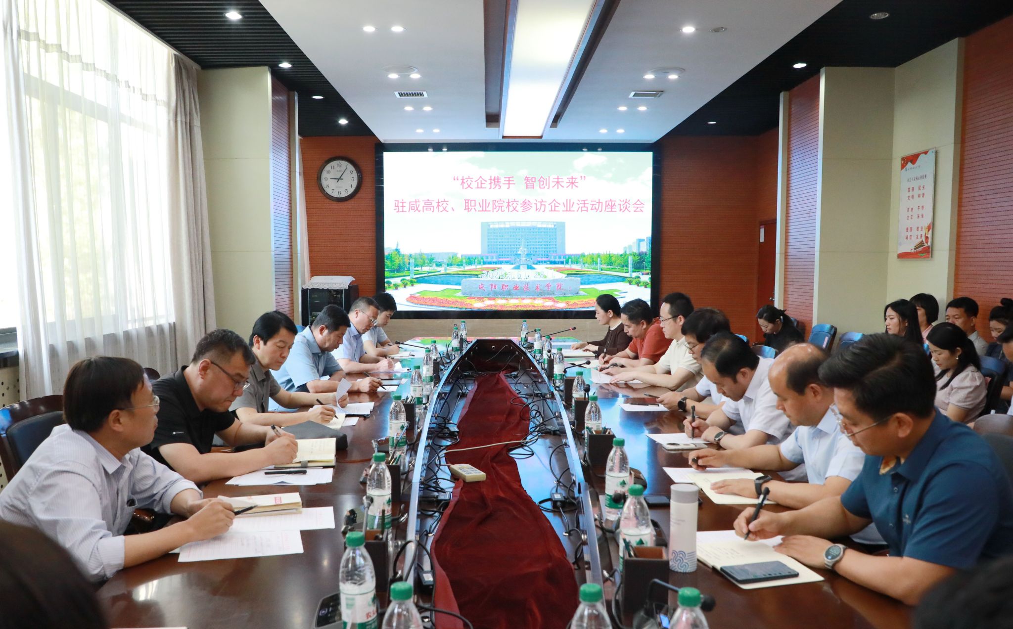 5月28日,咸阳市“校企携手 智创未来”产教融合座谈会在咸阳职院召开。市教育局、市委组织部、市科技局、市工信局等9部门领导、8所驻咸高校以及陕西东泰制药、陕西长风动力、咸阳诚迈电子科技、陕西步长制药等20多家企业参加座谈。学院副院长吴旭锦致辞。