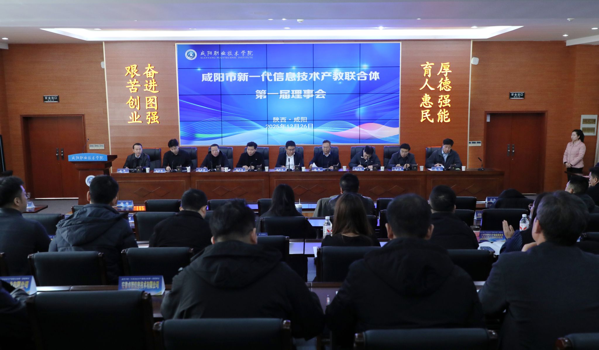 12月26日,咸阳职业技术学院院务楼二楼多功能报告厅座无虚席,咸阳市新一代信息技术产教联合体第一届理事会在此举行。咸阳高新区党工委委员、管委会副主任琚晓涛,咸阳职院党委副书记赵维,中共咸阳市委网信办总工程师郭伟超、网安科科长阴国峰,咸阳市教育局四级调研员李敢创,咸阳市工业和信息化局四级调研员马亚鹏,高新区管委会科技创新局局长冯伟,彩虹显示器件股份有限公司规划科技部经理李聪,咸阳师范学院、陕西财经职业技术学院等6所院校代表,咸阳彩虹光电科技有限公司、冠捷显示科技(咸阳)有限公司等57家企业代表,以及咸阳职院相关处室、信息工程学院负责人和教师代表参加。会议分为理事会议与产教融合发展论坛两个阶段。