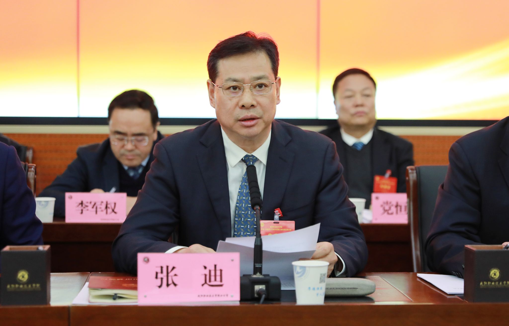 张迪向大会的成功举办表示热烈的祝贺,向与会代表以及长期奋战在教学、科研、管理一线的全体教职员工表示衷心的感谢。他指出,本次大会的胜利召开,是学院教职工政治生活和民主管理进程中一件大事,是在全院上下全面深入准确学习贯彻党的二十届四中全会精神,推动中省市各项决策部署落实落地关键节点召开的一次重要会议,也是确保学院继往开来,实现“十四五”圆满收官和“十五五”良好开局召开的一次统一思想、凝聚共识、催人奋进的大会,对于激发全体教职工主人翁意识,凝聚智慧力量,奋力开启学院高质量发展新征程,具有十分重要的意义。对工会工作,他强调:一要强化政治引领,筑牢“奋进图强”的思想根基,不断提高履职尽责的能力和水平,做教职工信赖的“职工之家”;二要加强民主建设,凸显“桥梁纽带”的职能作用,履行好维护、建设、参与、教育四项基本职能,努力营造心齐气顺、和谐稳定的校园氛围,真正成为党政放心、教职工满意的桥梁和纽带;三要凝聚奋进合力,谱写“强校升本”的发展新篇,激发教职工的创新活力,担当作为,汇聚成推动学院高质量发展的磅礴力量。希望全体教职工以本次“双代会”为新的起点,进一步凝心聚力、锐意进取,马不停蹄地投入到新一年各项工作中去,以更加饱满的热情、更加昂扬的斗志、更加扎实的作风,攻坚克难,开拓创新,为将学院“十五五”的宏伟蓝图变为美好现实而努力奋斗。