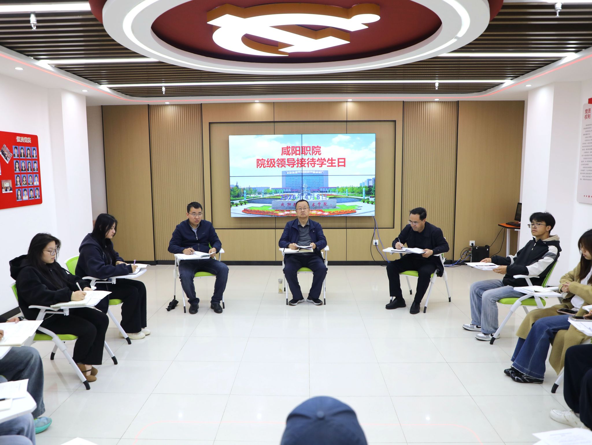 4月8日,咸阳职院党委副书记、工会主席孙彦彬在“一站式”学生社区与来自各二级学院的11位学生代表面对面座谈交流,倾听学生心声,解决学生诉求,关心学生成长。