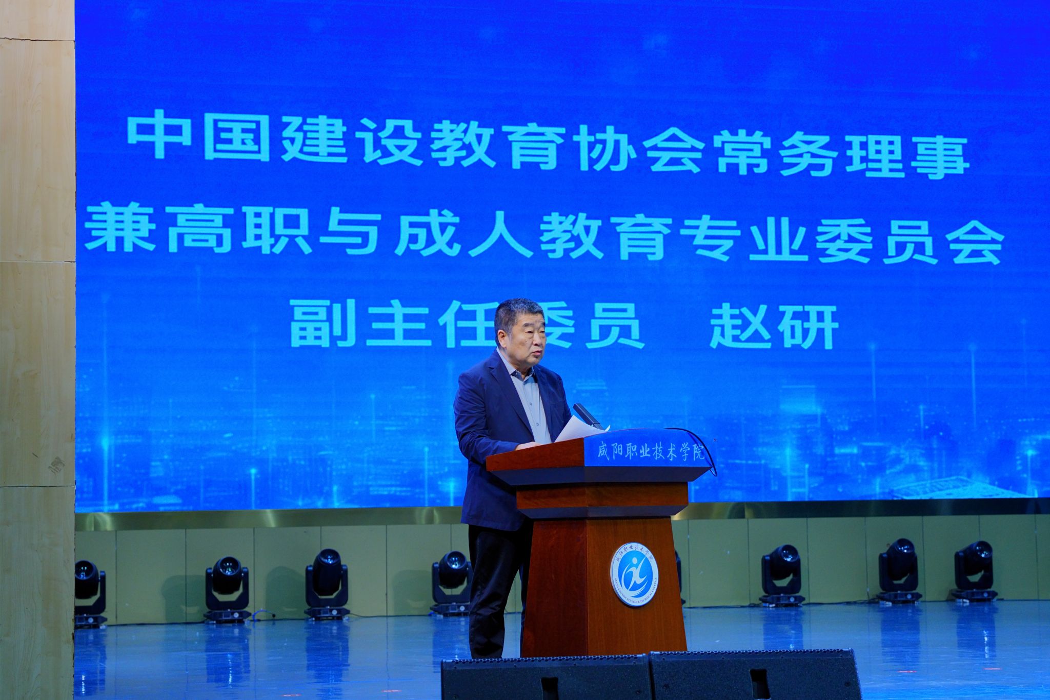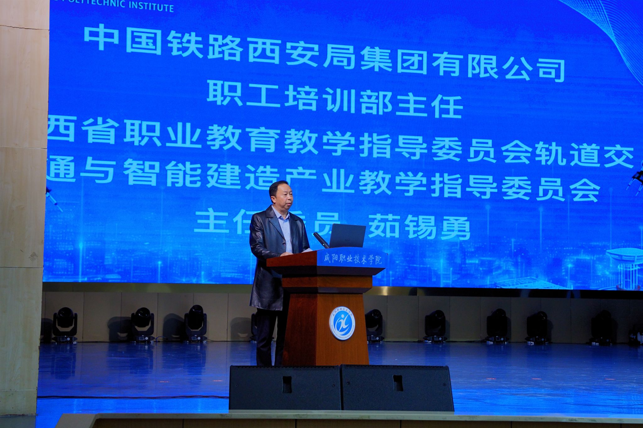 咸阳职院院长杨卫军在致辞中向莅临现场的各位领导与嘉宾表示热烈欢迎。他指出,当前轨道交通与智能建造产业正加速向数字化、智能化、绿色化迭代升级,本次大会既是对“质量强国”与“中国建造2035”战略的积极响应,也是推动职业教育与产业需求精准对接的务实之举,愿与各界同仁共同探索智能建造人才培养新路径。陕西铁路工程职业技术学院党委书记、省教指委轨道交通与智能建造产业教指委主任委员焦胜军在致辞中强调,教指委要锚定政策方向、深化产教融合、紧盯技术前沿、凝聚各方合力,推动人才培养与产业需求精准对接。中国建设教育协会常务理事兼高职与成人教育专业委员会副主任委员赵研指出,“智能建造中国行”是2020年发起的行业公益活动,旨在传递智能建造前沿信息、搭建校企合作桥梁,本次活动首次与地方专业教学指导机构联合举办,为活动深化发展开启了全新模式。他希望以本次活动为契机,深化与陕西同行的合作,共同推动人才培养模式创新,为建筑业转型升级输送更多高素质技术技能人才。