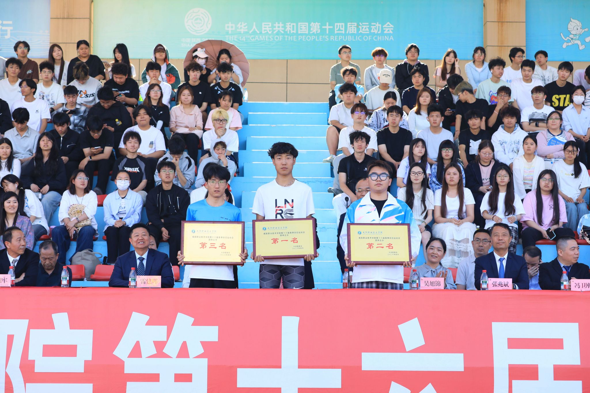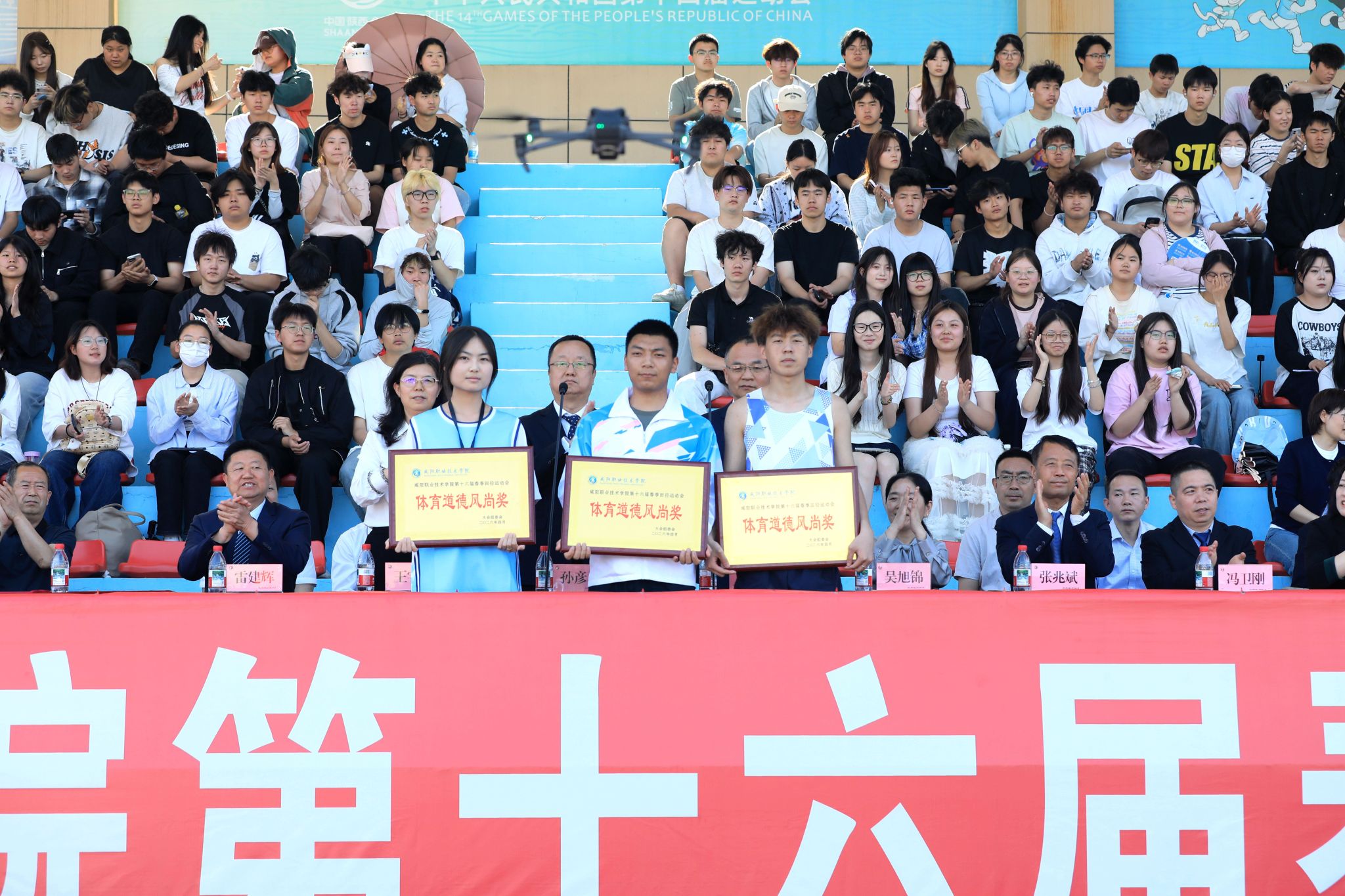 王宇文宣布运动会组织及个人获奖名单。医学院、信息工程学院、汽车工程学院获体育道德风尚团体奖,汽车学院闫晨阳等11名运动员获体育道德风尚奖,孙宏斌等10人获优秀裁判员,学生处、后勤处、体育学院获大会优秀组织奖。在全场热烈的掌声中,与会领导为获励者颁奖。