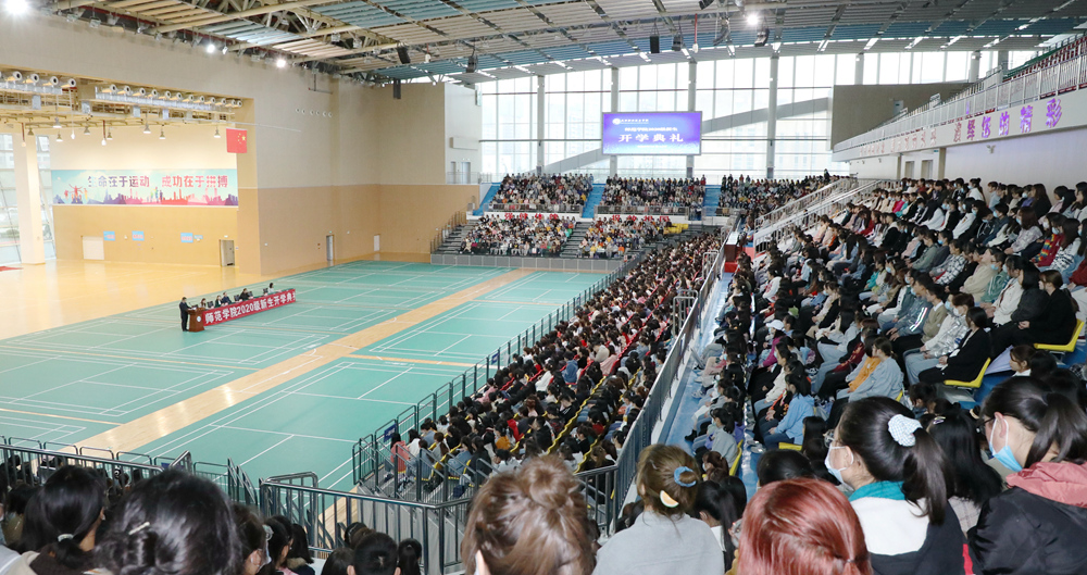 10月14日,师范学院2020级新生开学典礼在学院体育馆举行,学院院长杨卫军出席并讲话。学生处处长高鹏、师范学院院长任江维、党总支书记滑娟、副科级以上管理干部、全体无课教师、全体辅导员(班主任)及2020级2000余名新生参加,滑娟主持开学典礼。