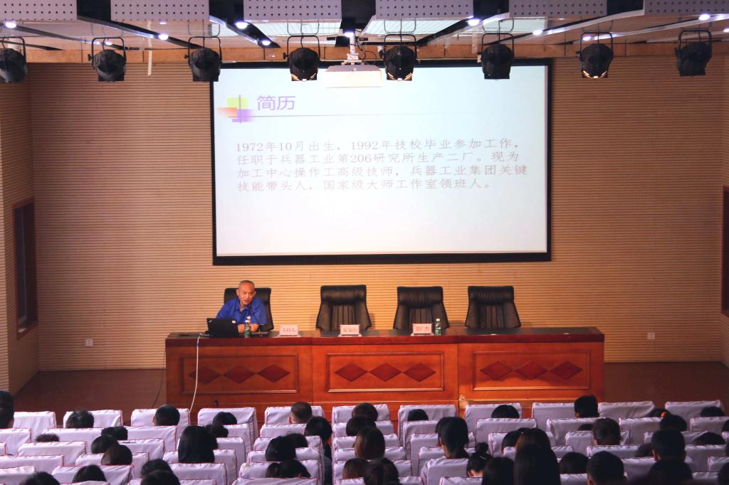 为深入贯彻党的十九大精神,落实立德树人根本任务,弘扬劳模精神和工匠精神,5月27日,咸阳职院在图书馆仪祉堂举办劳模工匠报告会,邀请“全国五一劳动奖章”获得者夏复山、贾广杰两位劳模来校作专题报告。