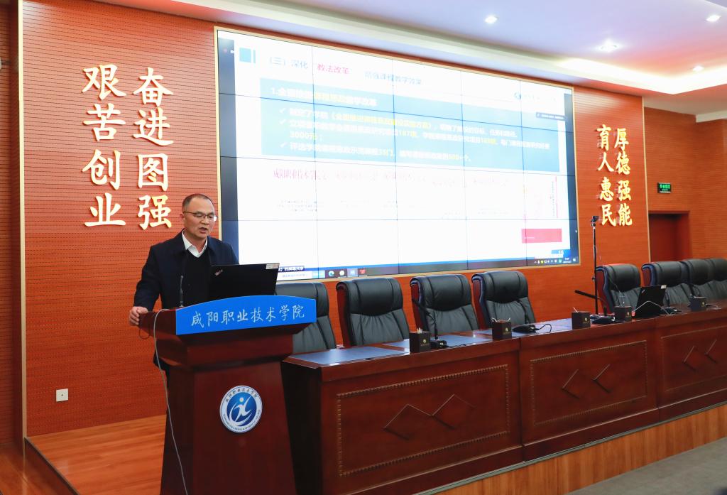 12月3日,“贯彻落实全国职业教育大会精神 推动陕西高等职业教育高质量发展”2021年陕西高职教育高质量发展论坛暨学术年会以腾讯视频会议形式召开。咸阳职院院长杨卫军在主会场参加会议。咸阳职院党委副书记席尚君,副院长杨新宇、吴旭锦,各二级院(部)院长(主任)、党总支书记,各处室主要负责人及相关工作人员在分会场参会。
