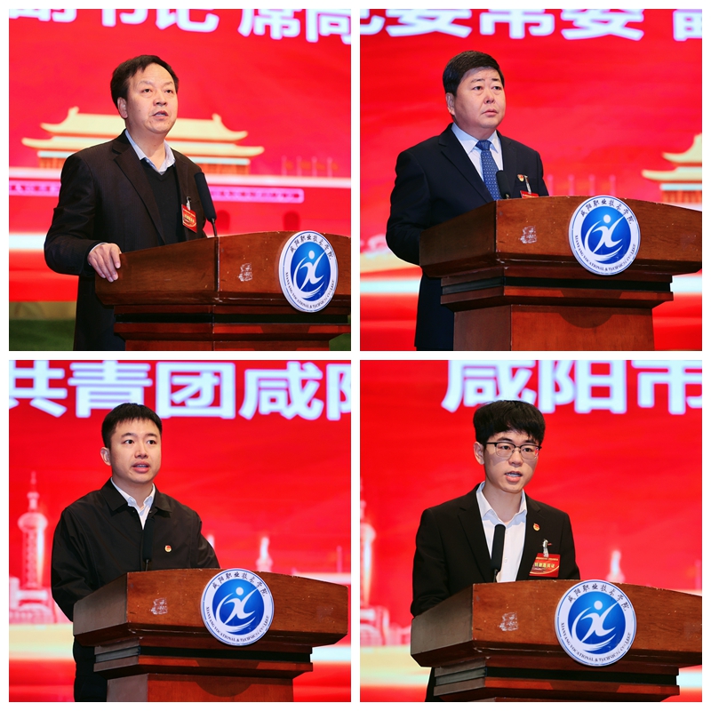 党委副书记席尚君讲话,副院长王辉致辞,共青团咸阳市委副书记高俊讲话,咸阳市学生联合会主席刘凯发言