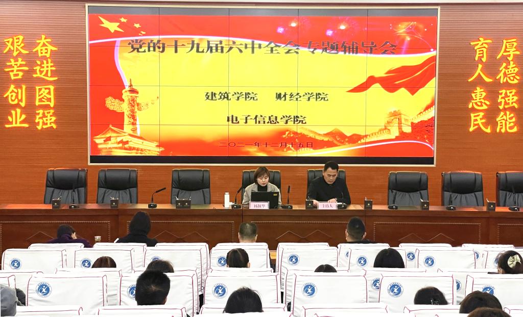12月15日下午,学院十九届六中全会精神宣讲团成员马克思主义学院教师杨颖华作学习贯彻全会精神专题辅导报告。建筑学院、电子信息学院、财经学院全体教职工参加报告会,会议由建筑学院党总支书记邢剑宏主持。
