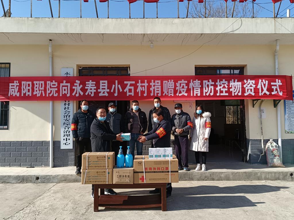 12月22日,咸阳职院为结对帮扶的永寿县店头镇小石村捐赠防疫物资。