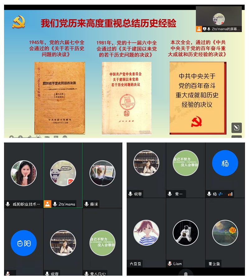 12月24日,学院党的十九届六中全会精神宣讲团成员、马克思主义学院副院长蔺建英作党的十九届六中全会专题讲座,纪委、宣传统战部全体教职工通过线上会议的形式聆听了报告。
