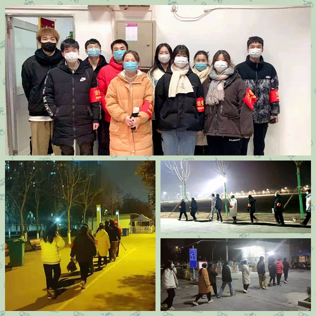 寒冬腊月的校园,夜晚温度已经低至零下。由学院保卫处警务室发动各班级安全信息员60人组建的6个“专职安全护校小分队”,仍然分头在校园内进行巡逻。“同学,请赶快回宿舍!”“同学,请你务必戴好口罩!”“这个教室的灯怎么还没有关?”……他们全方位排查校园安全隐患,协助保卫处守护好校园安全。志愿者们以饱满的热情和昂扬的斗志,展现新时代大学生的责任与担当,尽显当代青年的初心与使命。
