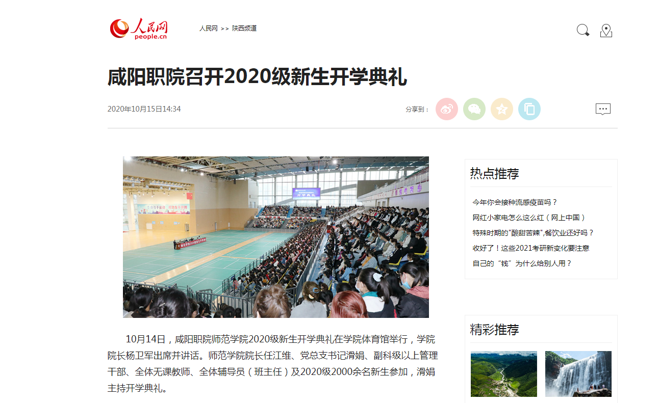 咸阳职院2020级新生开学典礼与以往不同,以各二级学院为单位自行召开。10月14至15日,学院领导班子成员席尚君、张建刚、芮红亚、王辉、杨新宇、吴旭锦等分别走进医学院、机电(技师)学院、建筑学院、电子信息学院、财经学院、医药化工学院、仪祉农林学院、汽车学院、体育学院、民族文化艺术学院参加了开学典礼,为新生送上亲切问候、殷切期望、衷心祝福。